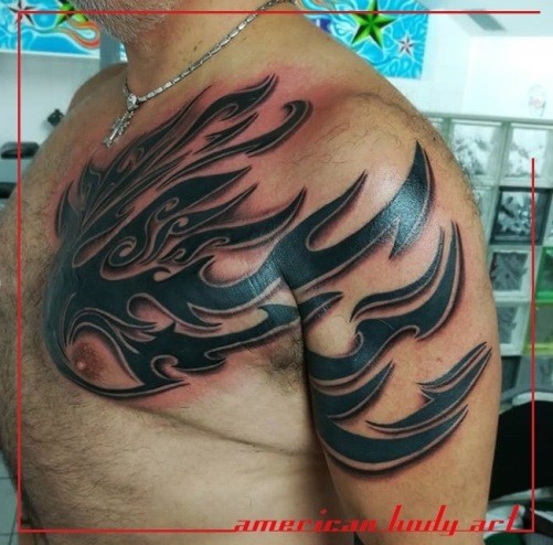 Tatouage sur l'épaule réalisé dans l'un de nos salons de tatouage. Venez découvrir nos salons de tatouage American Body Art partout dans Paris...