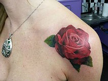 Tatouage sur l'épaule réalisé dans l'un de nos salons de tatouage. Venez découvrir nos salons de tatouage American body art partout dans Paris. Trouvez vos idées de tatouage avec divers books de dessins m...